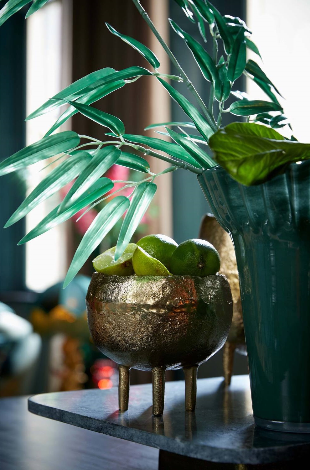 Златната декоративна купа MUXIA S в по-малък размер е фин и стилен акцент, който лесно намира място във всеки интериор. Със своя деликатен блясък купа MUXIA S придава елегантност, без да натоварва пространството, и е идеална за по-малки маси, рафтове или нощни шкафчета.