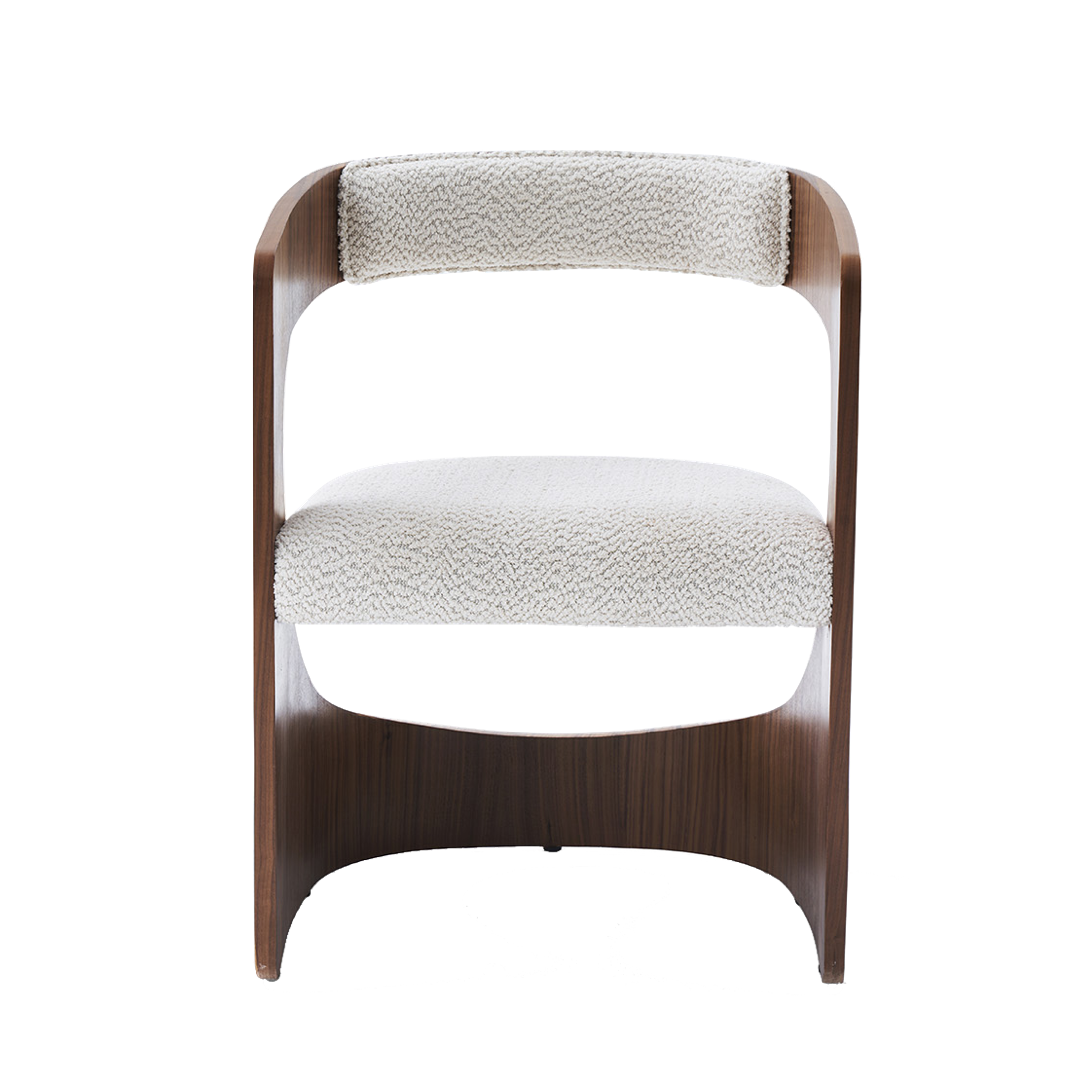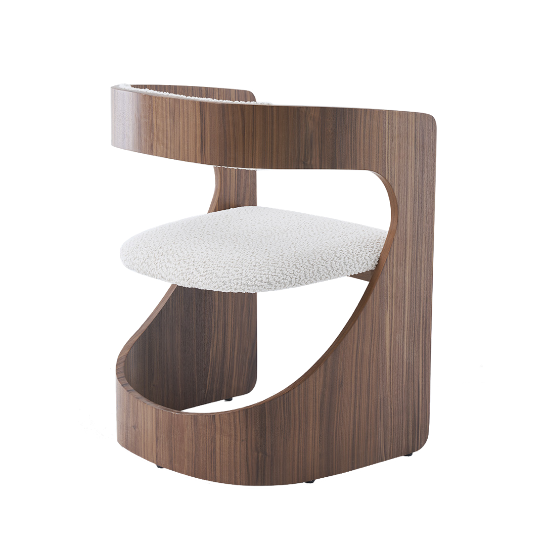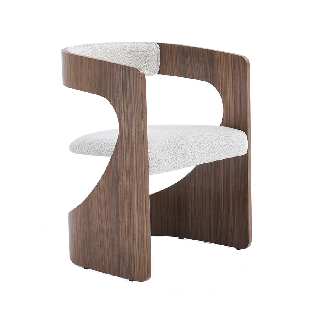Кресло QSIT е безпроблемно съчетание от съвременен дизайн и органична елегантност. Извитата му дървена рамка излъчва топлина и изтънченост, а силуетът с отворена облегалка създава усещане за лекота и плавност. Тапицираните с премиум дамаска седалка и облегалка придават нотка текстура и комфорт, перфектно допълвайки естествената дървесна шарка. Внимателно изработения скулптурен дизайн на креслото осигурява както визуално въздействие, така и ергономична опора. Перфектен за модерен интериор, Кресло QSIT е доказателство за красотата на простотата, предефинирайки пространствата за хранене със своя отличителен стил и вечна привлекателност.